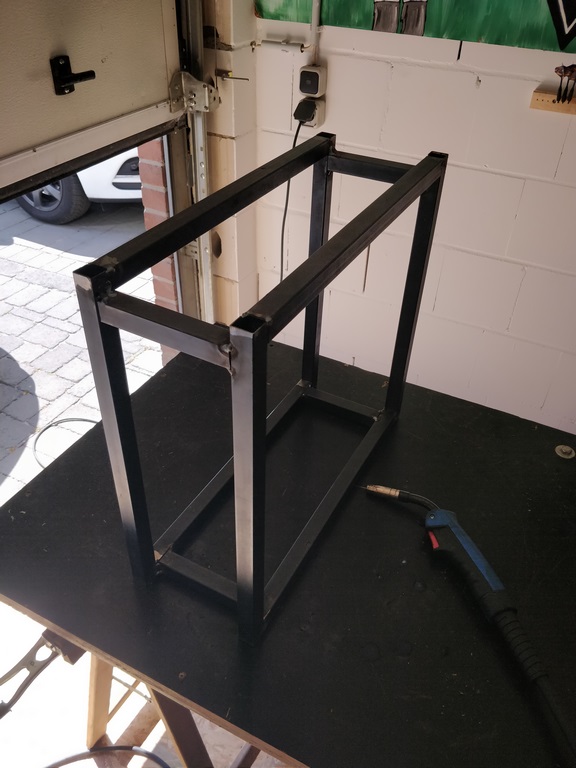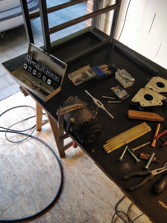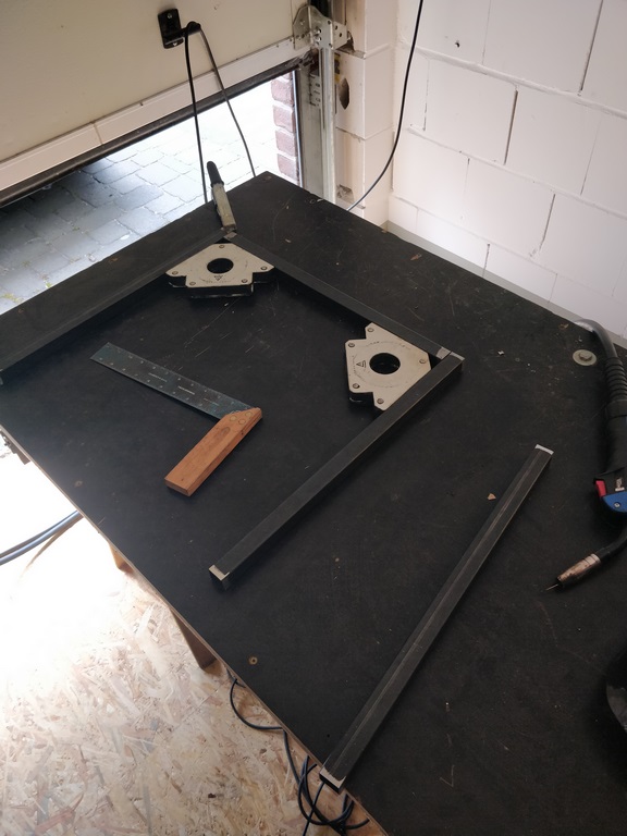 Dann kann es los gehen. Anfertigung des Rahmens für die Drucklufterzeugung.