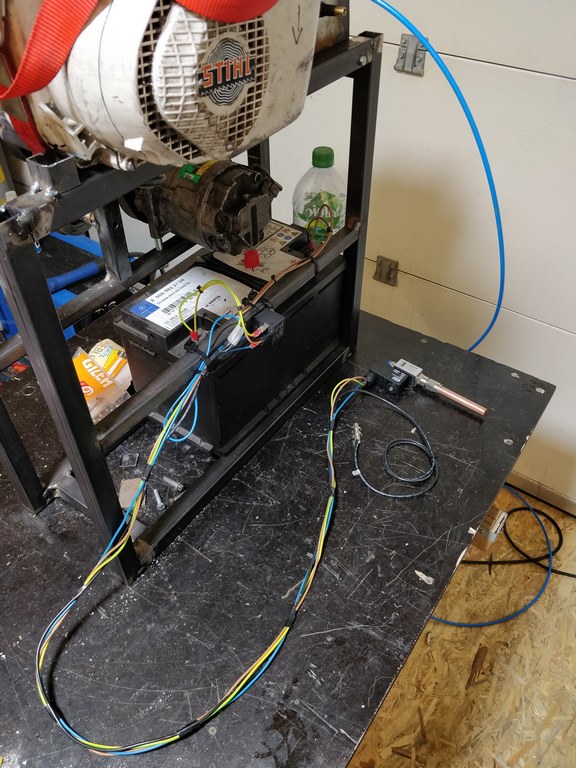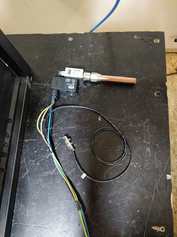 Nun kommt der elektropneumatische Teil, das Magnetventil wird mit einem Näherungssensor, zur Lauferfassung, verkabelt.