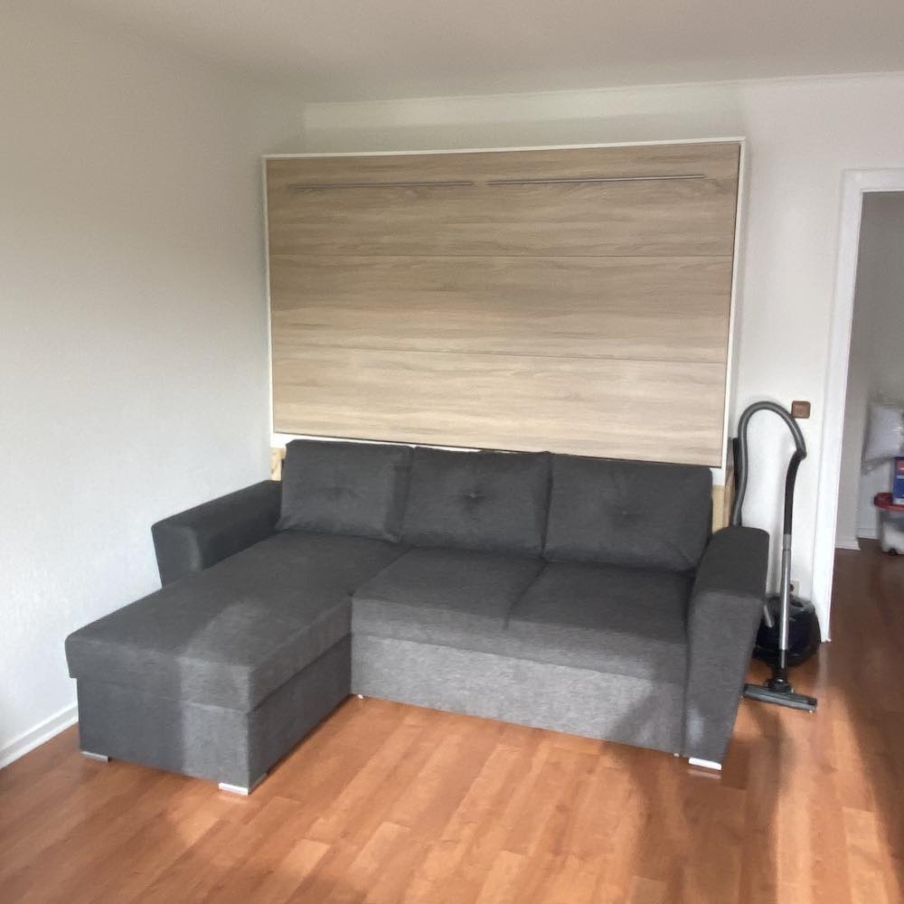 Ein Bett, das sich über eine Couchecke ausklappen lässt.